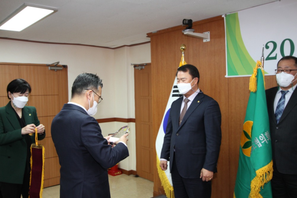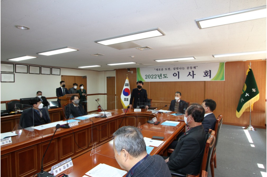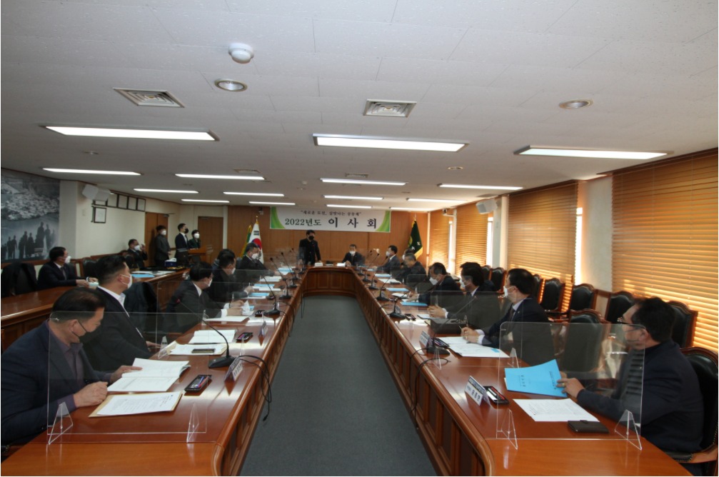 Before the board meeting, there were the greetings from the President Yum Hong Chul of Korea Saemaul Undong Center and the award for best 2021 Saemaul Regional Offices in Cities in Association Evaluation. The board meeting proceeded in the order of report of quorum, greetings from the chairman, deliberation of agenda, and deliberation of resolutions.