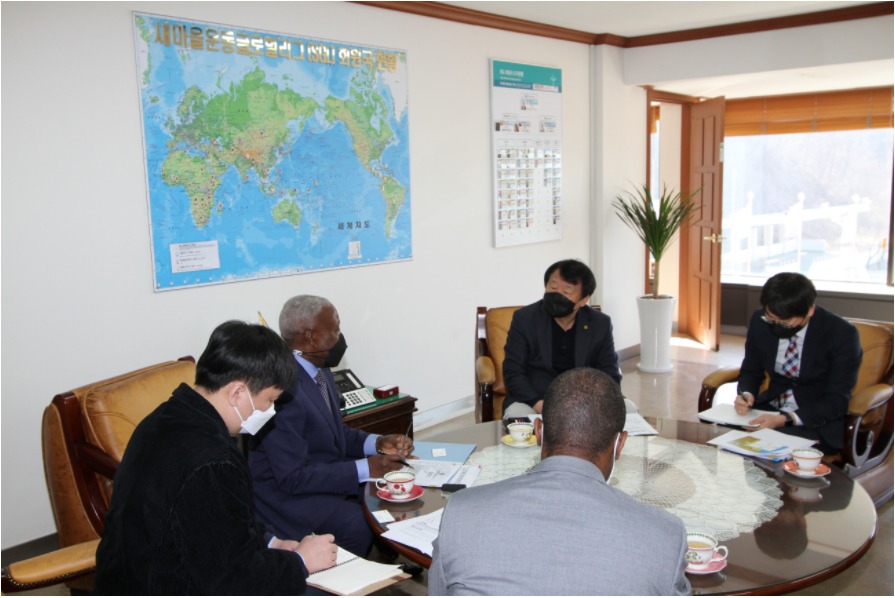 The Angola ambassador to Korea discussed with President Yum about poverty alleviation in villages in Angola through Saemaul Undong and ways to cooperate with Korea Saemaul Undong Center. As a starting point, the Angolar ambassador H.E. Edgar hoped for Saemaeul Undong Training for four high-ranking government officials in Angola this April.