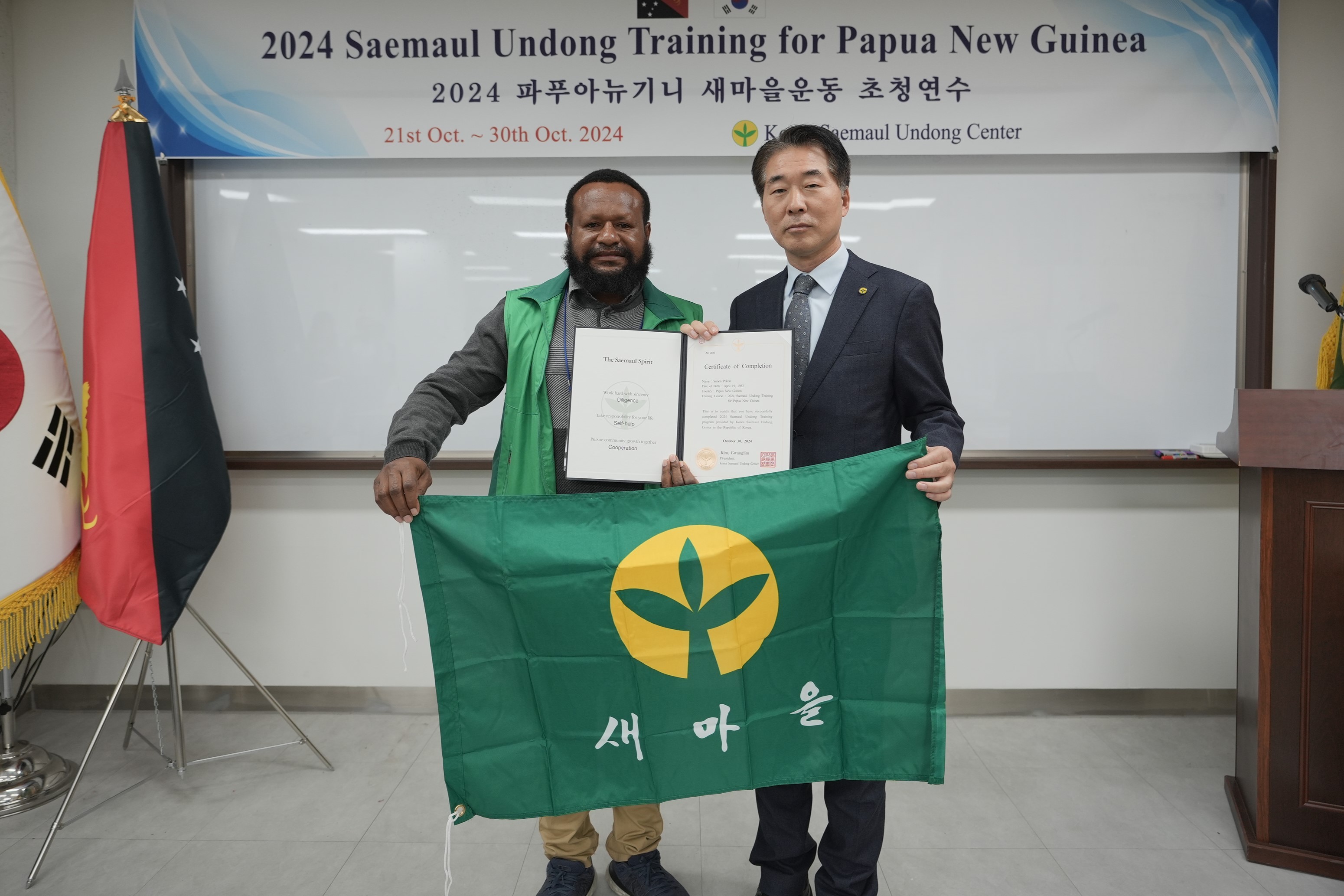 On Wednesday, October 30th, the Completion Ceremony for the Saemaul Undong Invitational Training Program for Papua New Guinea was held in Lecture Room 5 of the Saemaul Undong Center.